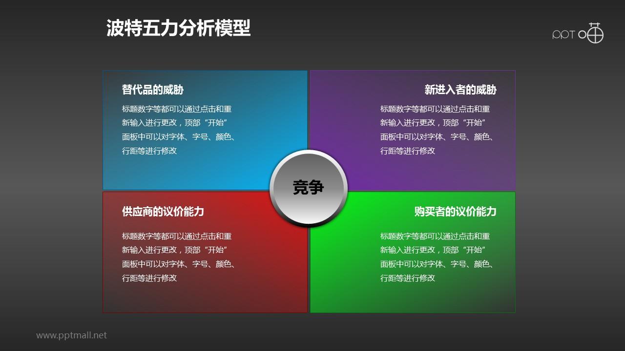 - 橫向力量:替代品的威脅,新進入者的威脅,競爭性競爭