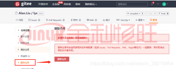 注意:要刪除不要的倉庫可以點擊管理