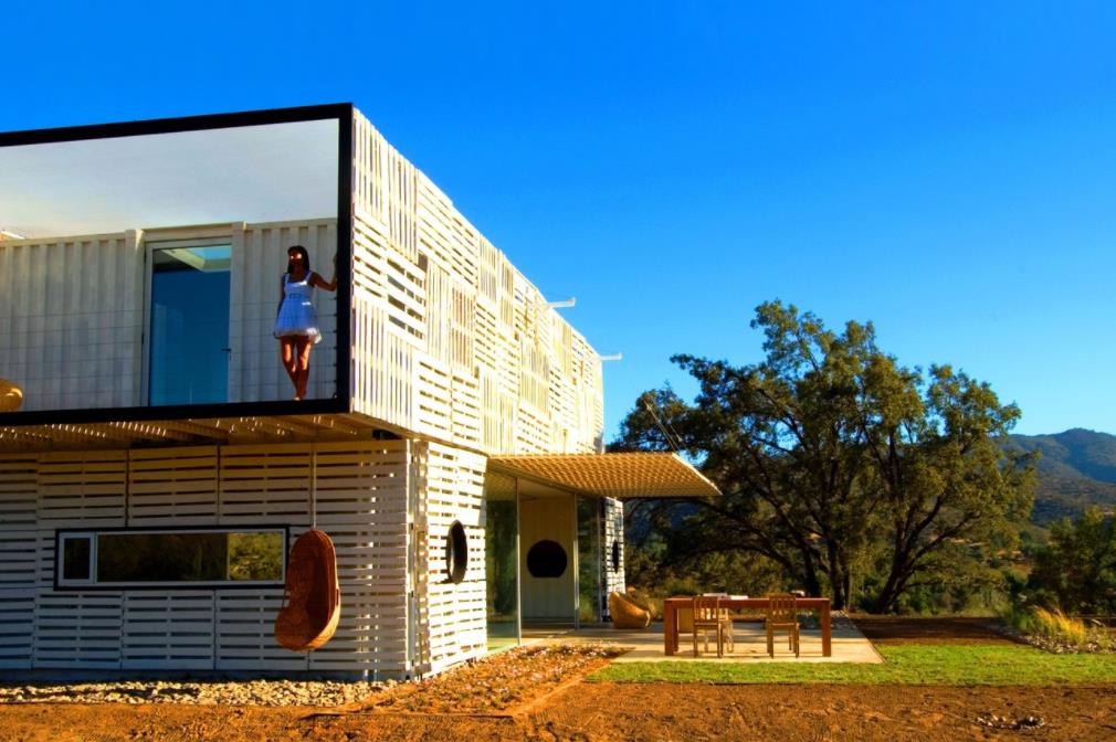 另一個智利美女, 宣言之家, 比其他制造鋼結構房屋的例子要模糊一些。立面上覆蓋著回收的木制托盤, 以保護墻壁不受陽光的傷害,并在冬季保持溫暖的空氣。盡管它的尺寸很大,但它只使用了三個海運集裝箱,間隔開來,用玻璃板和其他材料連接在一起,給人一種開闊的感覺。并且主要使用太陽能發(fā)電供電。