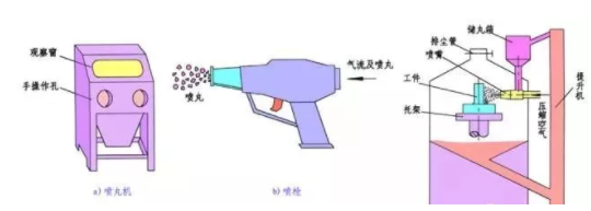 噴丸強化是將大量高速運動的彈丸噴射到零件表面上,猶如無數個小錘錘擊金屬表面,使零件表層和次表層發生一定的塑性變形而實現強化的一種技術。
