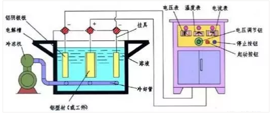 陽極氧化前要經過拋光、除油、清洗等預處理,其后要進行沖洗、著色和封閉等處理。