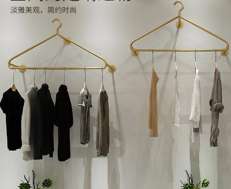 服裝店不銹鋼玫瑰金上墻展示架圖片
