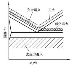 各種退火和正火的加熱溫度范圍如圖1.4.16所示。