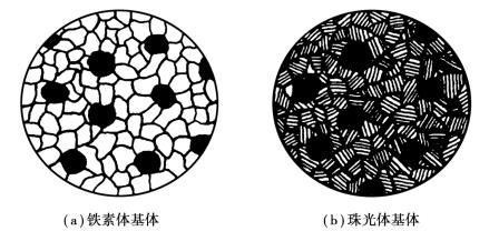 球墨鑄鐵的化學成分為w C= 3.6%~4.0%,w Si= 2.0%~3.2%,w P≤0.1%,w S≤0.07%。球墨鑄鐵的碳、硅含量較高,以降低白口傾向,保證球化效果。硫、磷含量較低,以降低其有害作用。因為S與球化劑中的Mg反應生成MgS夾渣,增加球化劑的消耗,降低球化效果;P易形成磷共晶,割裂基體,使球墨鑄鐵韌性明顯降低,同時還加大形成疏松的傾向。球墨鑄鐵基體組織有鐵素體、珠光體和“鐵素體+珠光體”等。