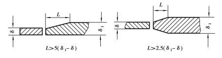 圖4.5.7 不同厚度金屬材料對接的過渡形式