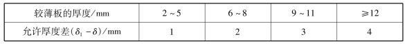 表4.5.1 不同厚度金屬材料對接時允許的厚度差