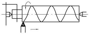 圖5.2.18 左螺旋的車削運(yùn)動(dòng)