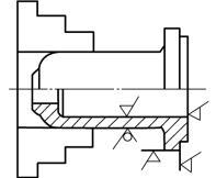 ①選取不需要加工的表面作為粗基準。這樣有利于減小加工表面與不加工表面之間的位置誤差,有時還可能在一次裝夾中對所有需要加工的表面進行加工。例如,圖5.3.6所示的筒形零件,以不需要加工的外圓面作為粗基準,可以在一次安裝中把絕大部分需要加工的表面加工出來,并能保證筒壁厚均勻,端面與內孔軸線垂直。
