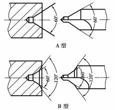中心孔分為不帶護(hù)錐的(A型)、帶護(hù)錐的(B型)、帶螺孔的(C型)3種。由于該軸的零件圖無(wú)明確要求,故可選用A型或B型中心孔,并用相應(yīng)的中心鉆頭鉆出,如圖5.3.11所示。